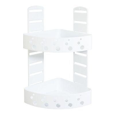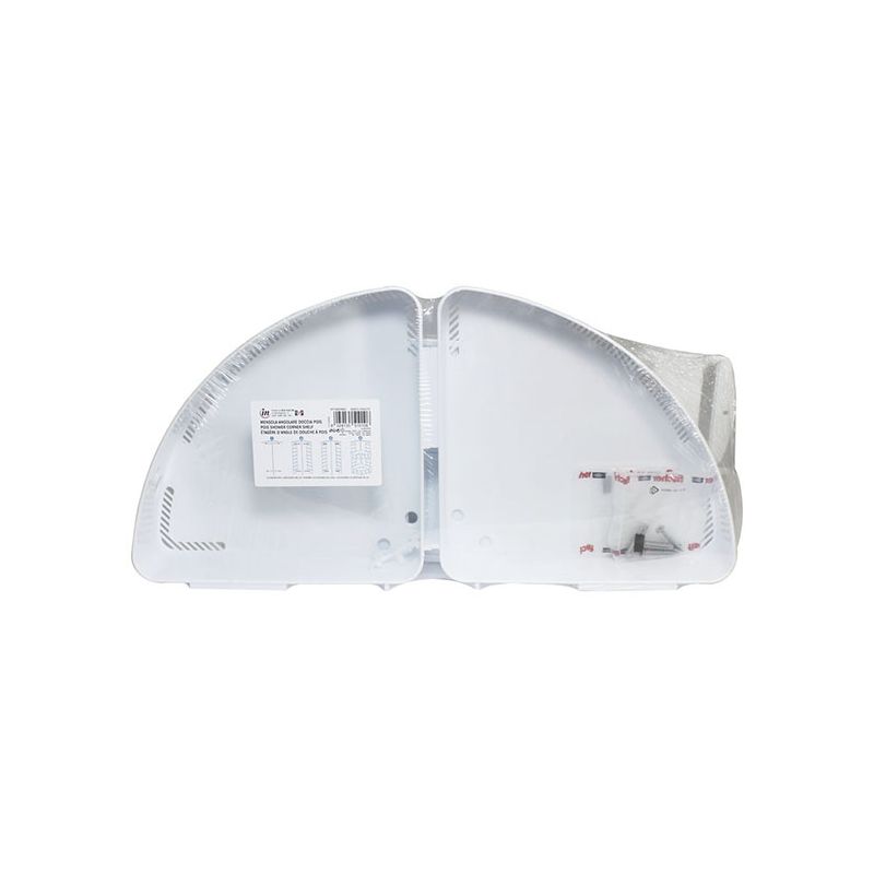 Mensola a 2 ripiani angolare per doccia in PS antiurto bianco. Grazie alle fessure sui supporti è possibile decidere la posizione dei 2 ripiani, che possono essere riposizionati a piacimento quando si vuole, così da adattarsi a tutte le esigenze. Ogni ripiano ha il fondo forato per permettere all'acqua di defluire. Il materiale plastico di cui è composta riduce al minimo la visibilità dei residui di calcare e rende la pulizia facile e veloce in quanto non è necessario utilizzare detergenti specifici per superfici cromate. Inoltre i ripiani removibili permettono un'igiene perfetta. Pratica e comoda sia per sfruttare al massimo lo spazio all'interno della doccia sia per chi vuole tenere a portata di mano ed organizzati shampoo e saponi. Il montaggio a muro con le viti rende la mensola stabile e grazie al materiale antiurto sarà durevole nel tempo. Le istruzioni e il kit per il montaggio a muro sono inclusi nella confezione.
