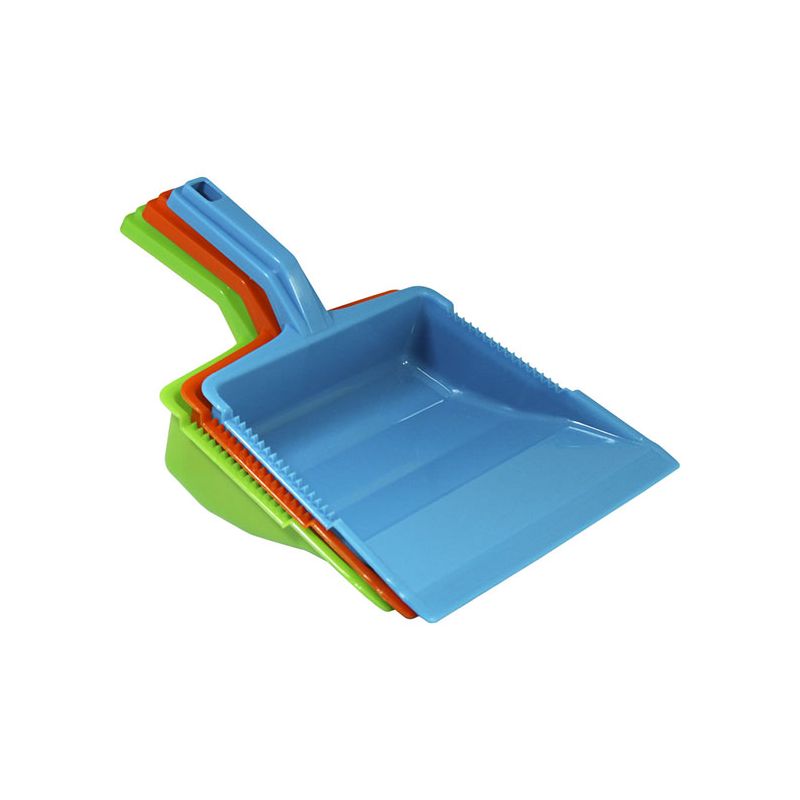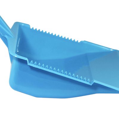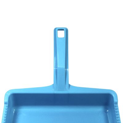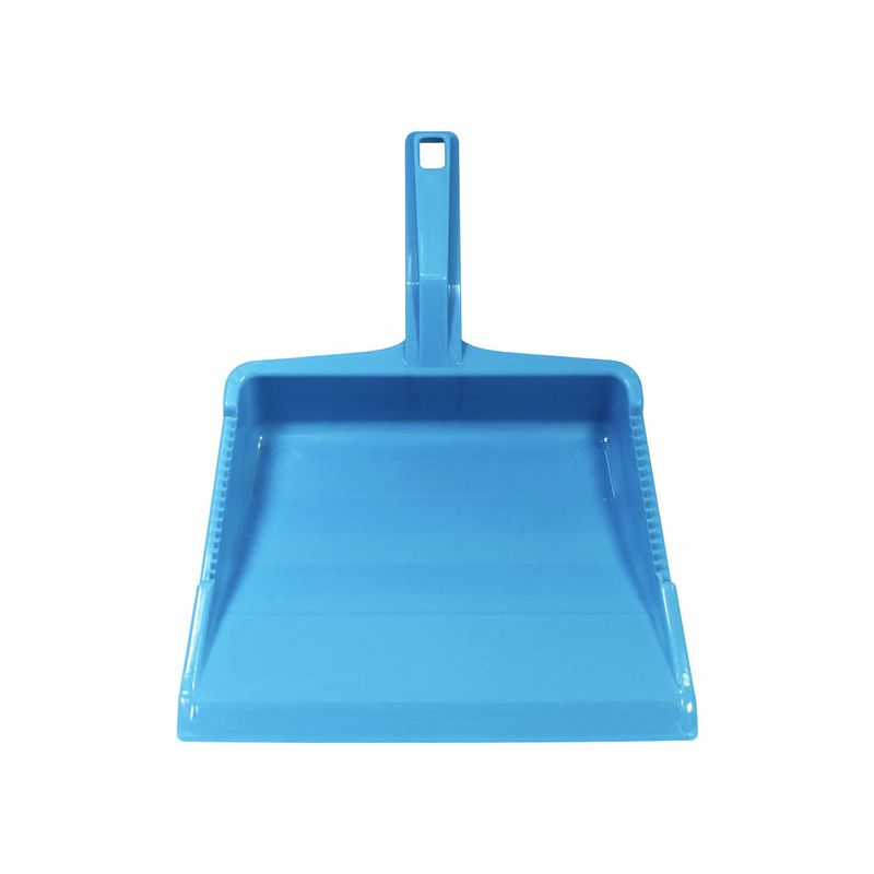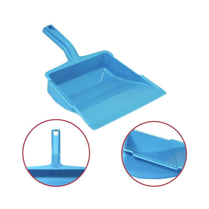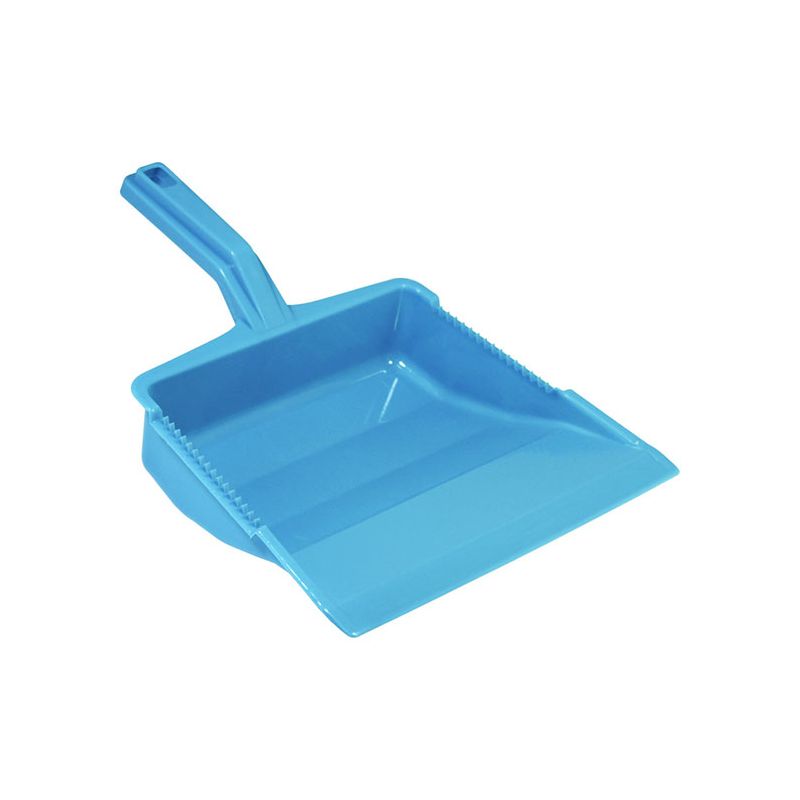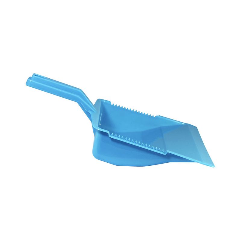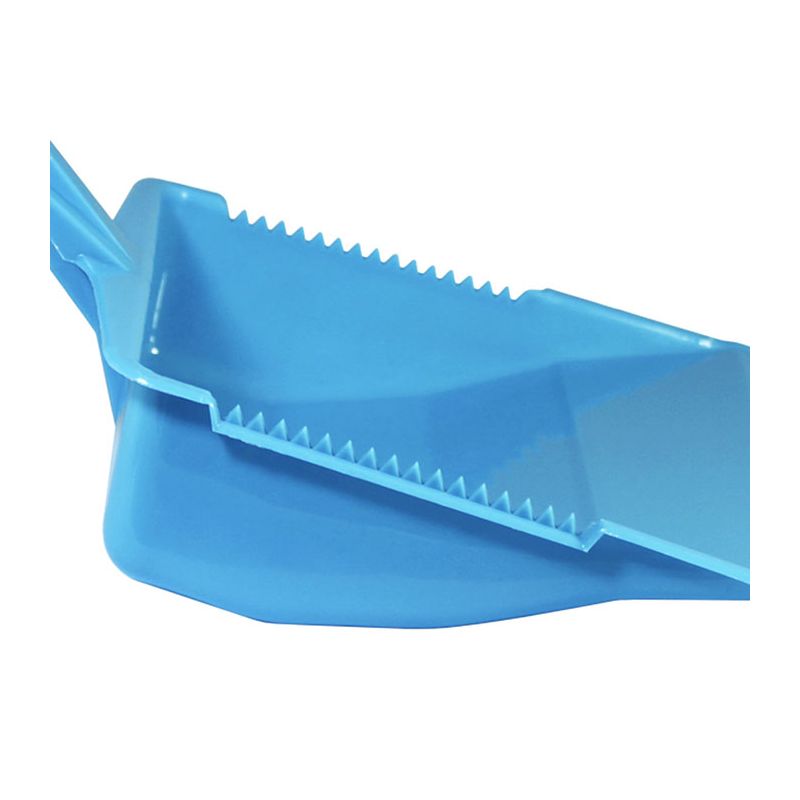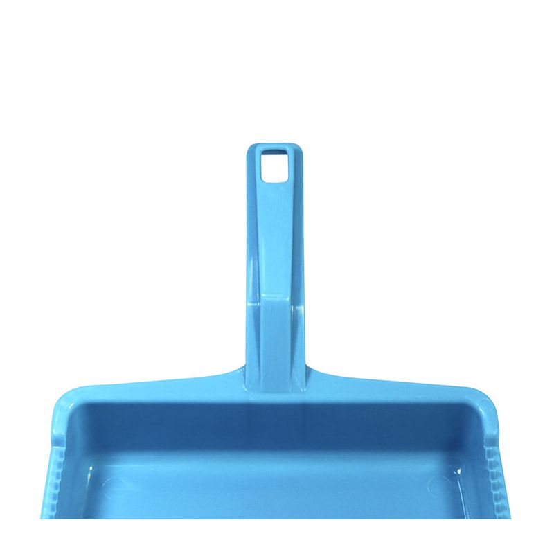 Paletta alzaimmondizia con manico ergonomico squadrato in PP celeste. Realizzata in materiale resistente e facile da pulire la paletta presenta una doppia zigrinatura per la pulizia delle setole della scopa e un foro sul manico per poterla appendere. Il suo design permette di contenere la sporcizia raccolta nella zona vicino al manico così da non rischiare che ricada a terra.