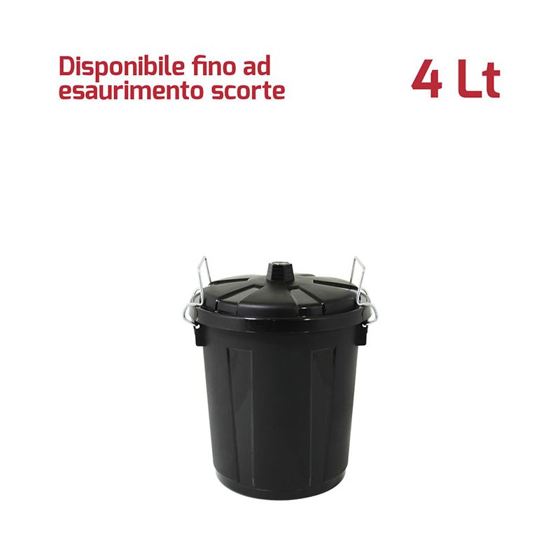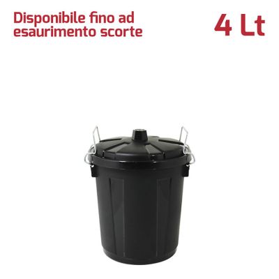 Bidone Mini 4Lt con coperchio in PP nero e chiusure in metallo. Pratico bidone utile sia in ambienti professionali che domestici e adatto sia all'uso esterno che interno: ideale per la spazzatura, per la cura dell'orto o del giardino. Le chiusure in metallo assicurano che i rifiuti e gli odori rimangano all'interno e fungono anche da maniglie per facilitare il trasporto del bidone. Il materiale in cui è realizzato rende il bidone resistente, duraturo e facile da pulire grazie alla superficie lucida. Grazie alla vasta gamma di colori e le diverse capacità sono ideali anche per la raccolta differenziata.