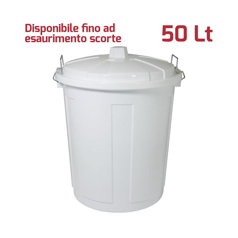 Bidone Big 50Lt con coperchio in PP bianco ghiaccio e chiusure in metallo. Pratico bidone utile sia in ambienti professionali che domestici e adatto sia all'uso esterno che interno: ideale per la spazzatura, per la cura dell'orto o del giardino. Le chiusure in metallo assicurano che i rifiuti e gli odori rimangano all'interno e fungono anche da maniglie per facilitare il trasporto del bidone. Il materiale in cui è realizzato rende il bidone resistente, duraturo e facile da pulire grazie alla superficie lucida. Grazie alla vasta gamma di colori e le diverse capacità sono ideali anche per la raccolta differenziata.
