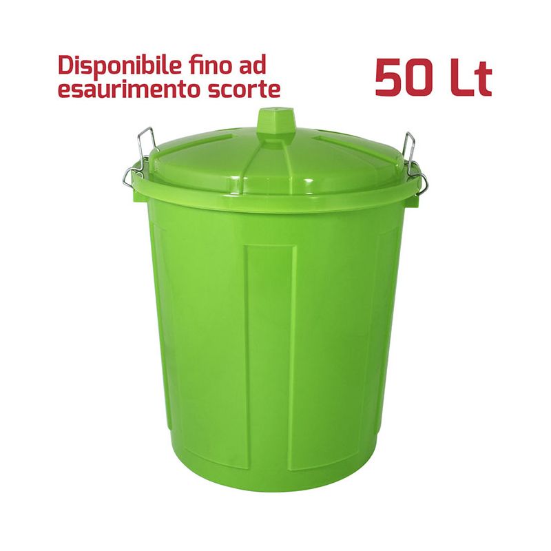 Bidone Big 50Lt con coperchio in PP verde e chiusure in metallo. Pratico bidone utile sia in ambienti professionali che domestici e adatto sia all'uso esterno che interno: ideale per la spazzatura, per la cura dell'orto o del giardino. Le chiusure in metallo assicurano che i rifiuti e gli odori rimangano all'interno e fungono anche da maniglie per facilitare il trasporto del bidone. Il materiale in cui è realizzato rende il bidone resistente, duraturo e facile da pulire grazie alla superficie lucida. Grazie alla vasta gamma di colori e le diverse capacità sono ideali anche per la raccolta differenziata.