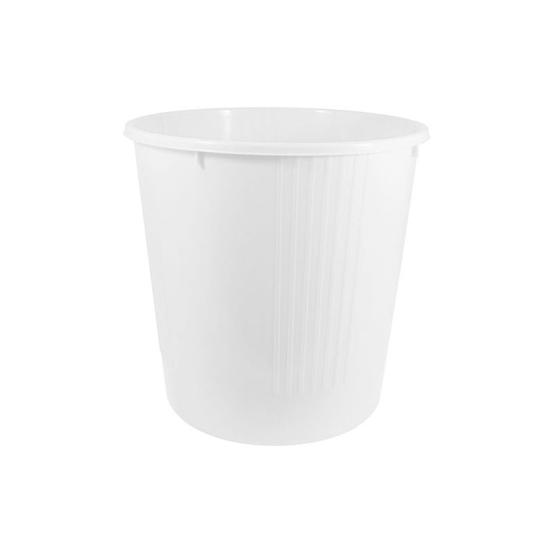 Cestino gettacarta in PP bianco ghiaccio. Caratterizzato da un motivo in rilievo a strisce verticali sulla superficie esterna, è adatto sia in ambiti professionali che domestici per la raccolta dei rifiuti. Il materiale con cui è realizzato è leggero ma robusto e facile da pulire.