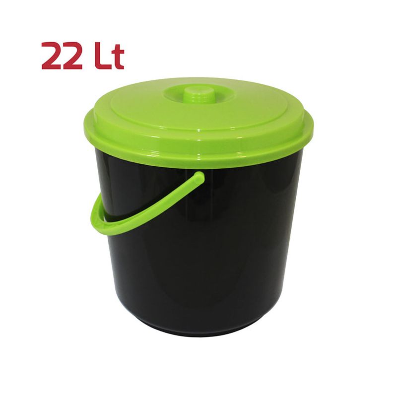 Bidone in PP nero con manico e coperchio verde brillante. Pratico bidone da 22Lt ideale per la spazzatura ma può essere utilizzato anche per le pulizie o come semplice contenitore per la casa, il garage, il giardino o anche per i giocattoli. Utile sia in ambienti domestici che professionali, si presta bene per la raccolta differenziata dell'immondizia grazie agli svariati colori in gamma. Il manico permette di spostare il secchio con estrema facilità e la superficie lucida del prodotto ne semplifica la pulizia.