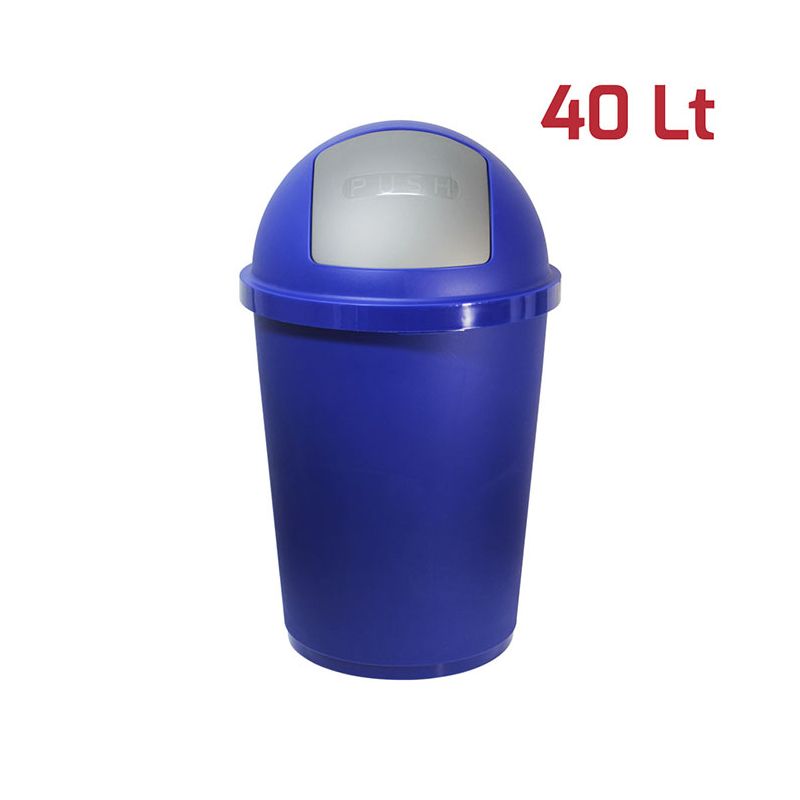 Bidone Zeuss da 40Lt in PP blu scuro e battola push argento. Caratteristica principe del prodotto è la comoda e pratica apertura push con chiusura automatica. La battola ha ben 2 molle che fanno in modo che si richiuda sempre perfettamente e che i cattivi odori rimangano all'interno. Il design pulito e semplice è reso moderno dalla finitura satinata della superficie esterna. All’interno invece la finitura lucida permette una perfetta pulizia del bidone. Il materiale in cui è realizzato lo rende robusto, stabile, duraturo e si adatta sia ad ambienti professionali che domestici, sia interni che esterni.