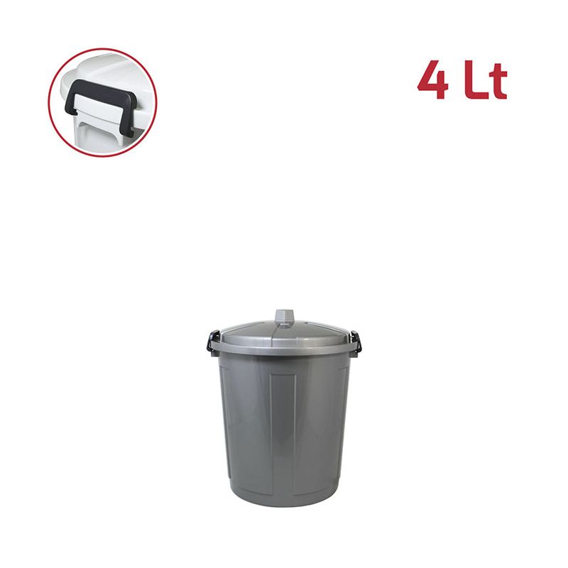 Bidone Mini 4Lt con coperchio in PP silver e chiusure in plastica. Pratico bidone utile sia in ambienti professionali che domestici e adatto sia all'uso esterno che interno: ideale per la spazzatura, per la cura dell'orto o del giardino. Le chiusure in plastica assicurano che i rifiuti e gli odori rimangano all'interno. Il materiale in cui è realizzato rende il bidone resistente, duraturo e facile da pulire grazie alla superficie lucida. Con la vasta gamma di colori e le diverse capacità sono ideali anche per la raccolta differenziata.