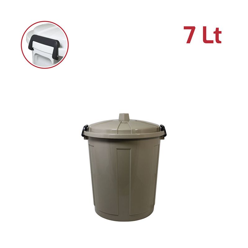 Bidone Jolly 7Lt con coperchio in PP mocha e chiusure in plastica. Pratico bidone utile sia in ambienti professionali che domestici e adatto sia all'uso esterno che interno: ideale per la spazzatura, per la cura dell'orto o del giardino. Le chiusure in plastica assicurano che i rifiuti e gli odori rimangano all'interno. Il materiale in cui è realizzato rende il bidone resistente, duraturo e facile da pulire grazie alla superficie lucida. Con la vasta gamma di colori e le diverse capacità sono ideali anche per la raccolta differenziata.