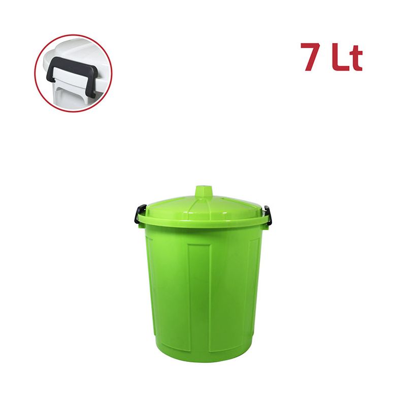 Bidone Jolly 7Lt con coperchio in PP verde brillante e chiusure in plastica. Pratico bidone utile sia in ambienti professionali che domestici e adatto sia all'uso esterno che interno: ideale per la spazzatura, per la cura dell'orto o del giardino. Le chiusure in plastica assicurano che i rifiuti e gli odori rimangano all'interno. Il materiale in cui è realizzato rende il bidone resistente, duraturo e facile da pulire grazie alla superficie lucida. Con la vasta gamma di colori e le diverse capacità sono ideali anche per la raccolta differenziata.
