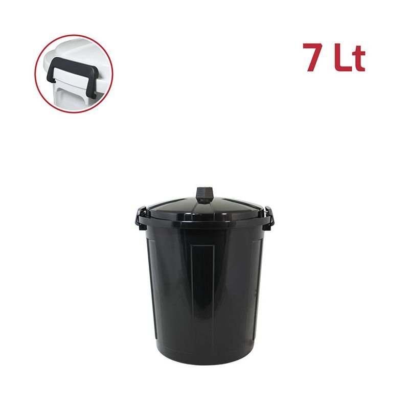 Bidone Jolly 7Lt con coperchio in PP nero e chiusure in plastica. Pratico bidone utile sia in ambienti professionali che domestici e adatto sia all'uso esterno che interno: ideale per la spazzatura, per la cura dell'orto o del giardino. Le chiusure in plastica assicurano che i rifiuti e gli odori rimangano all'interno. Il materiale in cui è realizzato rende il bidone resistente, duraturo e facile da pulire grazie alla superficie lucida. Con la vasta gamma di colori e le diverse capacità sono ideali anche per la raccolta differenziata.