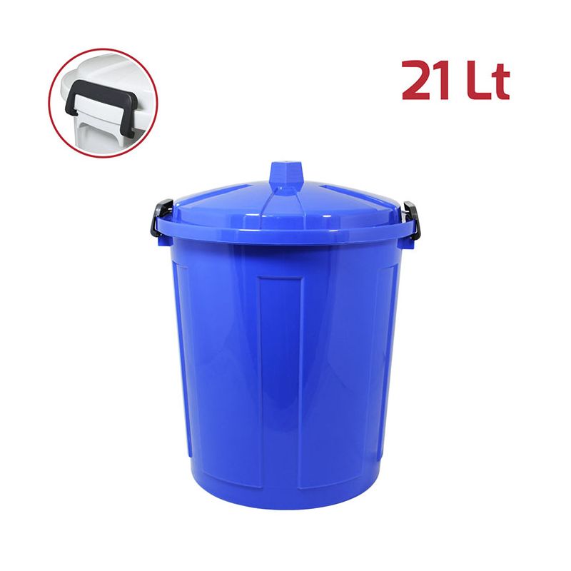 Bidone Maxi 21Lt con coperchio in PP blu brillante e chiusure in plastica. Pratico bidone utile sia in ambienti professionali che domestici e adatto sia all'uso esterno che interno: ideale per la spazzatura, per la cura dell'orto o del giardino. Le chiusure in plastica assicurano che i rifiuti e gli odori rimangano all'interno. Il materiale in cui è realizzato rende il bidone resistente, duraturo e facile da pulire grazie alla superficie lucida. Con la vasta gamma di colori e le diverse capacità sono ideali anche per la raccolta differenziata.