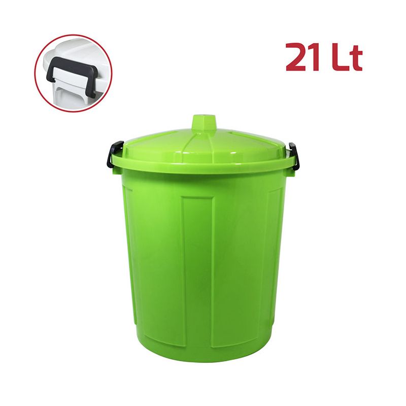 Bidone Maxi 21Lt con coperchio in PP verde e chiusure in plastica. Pratico bidone utile sia in ambienti professionali che domestici e adatto sia all'uso esterno che interno: ideale per la spazzatura, per la cura dell'orto o del giardino. Le chiusure in plastica assicurano che i rifiuti e gli odori rimangano all'interno. Il materiale in cui è realizzato rende il bidone resistente, duraturo e facile da pulire grazie alla superficie lucida. Con la vasta gamma di colori e le diverse capacità sono ideali anche per la raccolta differenziata.