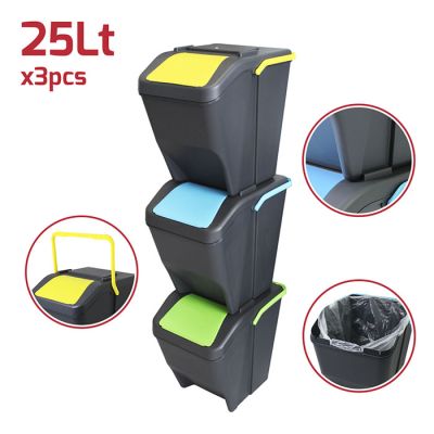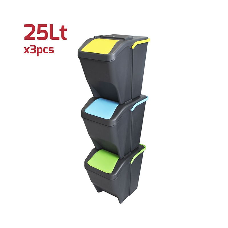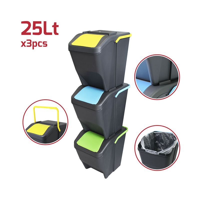 Set 3 Pattumiere Impilabili Raccolta Differenziata