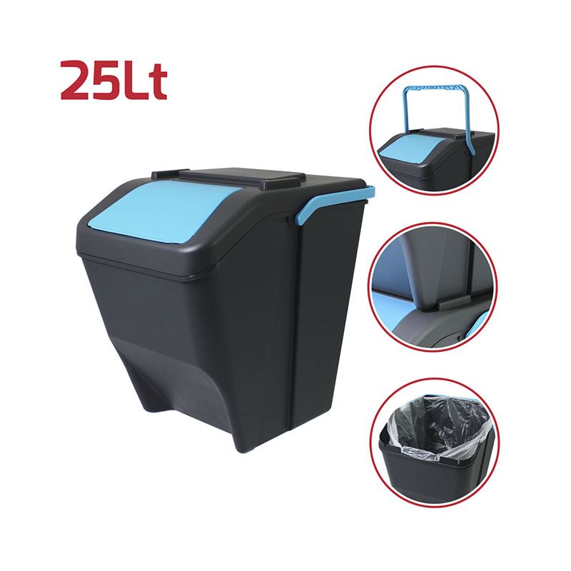 Set di 3 contenitori in PP antracite e battola turchese. Dal design moderno e pulito si prestano benissimo ad uso pattumiere per la raccolta differenziata, grazie anche ai vari colori della battola. Sono adatti sia ad uso domestico che professionale e permettono di sfruttare al massimo gli spazi in quanto sono facilmente impilabili. Oltre che per i rifiuti, questi contenitori sono perfetti anche per organizzare i giocattoli, gli accessori per la pulizia, gli strumenti di hobbistica varia ma anche per i giochi di cani e gatti. Robusti e facili da pulire ti aiuteranno a tenere l'ambiente ordinato e organizzato.