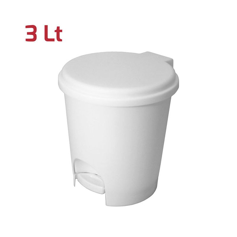 Pattumiera 3lt in PP bianco con apertura a pedale. Il design basico ma curato rende la pattumiera elegante e adatta ad ogni stile. Ideale per il bagno grazie alle sue dimensioni, la pattumiera contiene efficacemente gli odori ed è facile da pulire. Il cestello interno di cui è dotata è comodamente removibile grazie al manico e permette di svuotarlo in modo semplice ed igienico. Il meccanismo a pedale permette inoltre di aprire il coperchio senza toccarlo rendendo la pattumiera comoda da usare ed ancora più igienica.