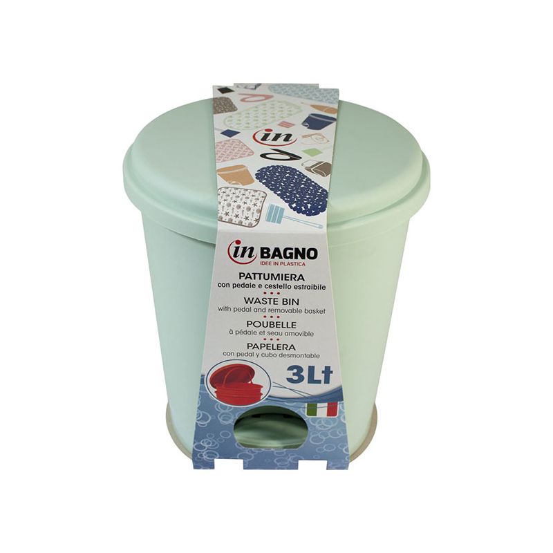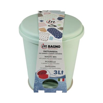 Pattumiera 3lt in PP verde salvia con apertura a pedale. Il design basico ma curato rende la pattumiera elegante e adatta ad ogni stile. Ideale per il bagno grazie alle sue dimensioni, la pattumiera contiene efficacemente gli odori ed è facile da pulire. Il cestello interno di cui è dotata è comodamente removibile grazie al manico e permette di svuotarlo in modo semplice ed igienico. Il meccanismo a pedale permette inoltre di aprire il coperchio senza toccarlo rendendo la pattumiera comoda da usare ed ancora più igienica.