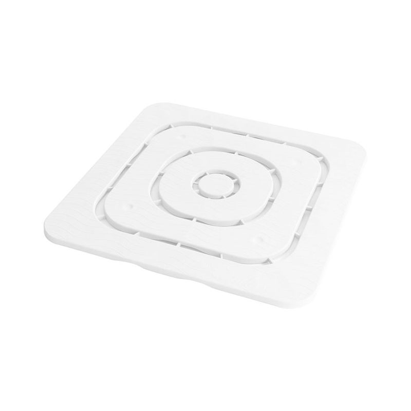 Pedana antiscivolo per doccia in PP bianco. Il decoro ad onde in rilievo rende la superficie antiscivolo e le ampie aperture permettono all'acqua di defluire completamente. Il materiale plastico rende il prodotto resistente agli agenti atmosferisci, sale e cloro ed infatti è adatta sia all'uso interno che esterno. Il suo design permette una pulizia rapida e garantisce un'igiene profonda. Robusta ed elegante è perfetta per le docce a bordo piscina in giardino, ma anche ad uso professionale come nei campeggi o nelle spiagge attrezzate.