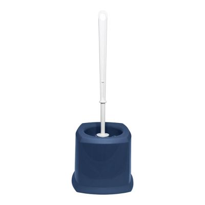 Portascopino per wc in PP blu avio. Pratico, funzionale e caratterizzato dalla doppia finitura della superficie si adatta facilmente a tutti gli stili e il suo design squadrato donerà un tocco moderno al bagno. Il solo scopino è anche venduto a parte così da poterlo sostituire quando necessario.