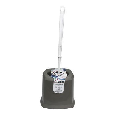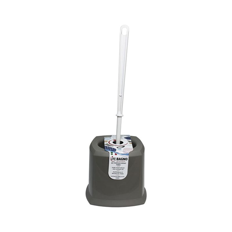 Portascopino per wc in PP grigio talpa. Pratico, funzionale e caratterizzato dalla doppia finitura della superficie si adatta facilmente a tutti gli stili e il suo design squadrato donerà un tocco moderno al bagno. Il solo scopino è anche venduto a parte così da poterlo sostituire quando necessario.