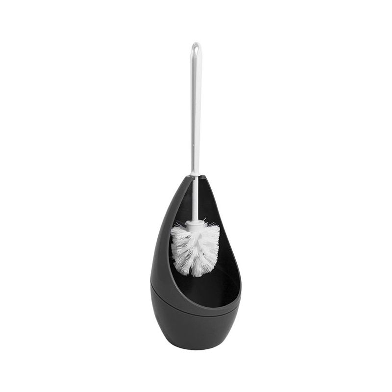 Portascopino per wc in PP grigio talpa con scopino in plastica. Il design particolare a forma di goccia darà un tocco unico al vostro bagno. La sua ampia base è facile da pulire e avendo l’apposito anello sulla sommità in cui incastrare il manico, lo scopino non sarà mai a contatto con l’acqua rilasciata dalle setole.