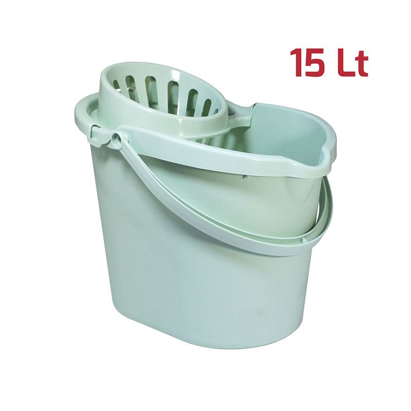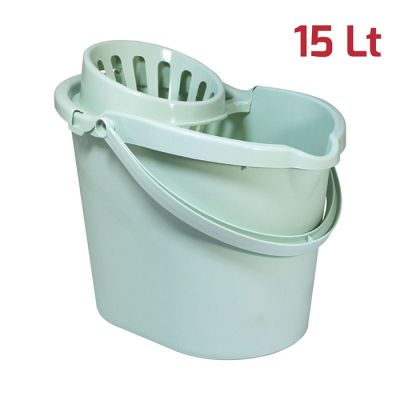 Secchio Evergreen da 15lt con manico e strizzatore per mop in PP verde salvia. Sulla superficie interna del secchio è presente una scala graduata per un dosaggio ottimale dei detersivi ed è dotato di beccuccio e fondo ergonomico per svuotarlo facilmente. Lo strizzatore è removibile assicurando una pulizia perfetta del prodotto. Dal design senza tempo, robusto, pratico e realizzato con materiali certificati e di alta qualità, è l’ideale per la pulizia di qualsiasi ambiente, sia domestico che professionale. Può essere abbinato alla vaschetta per il recupero dell’acqua sporca da 6lt.