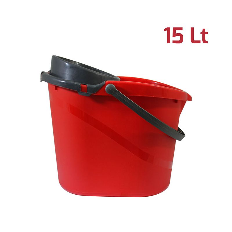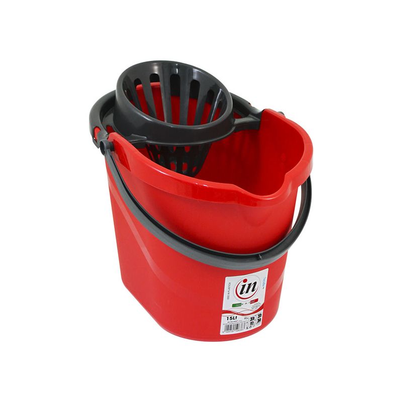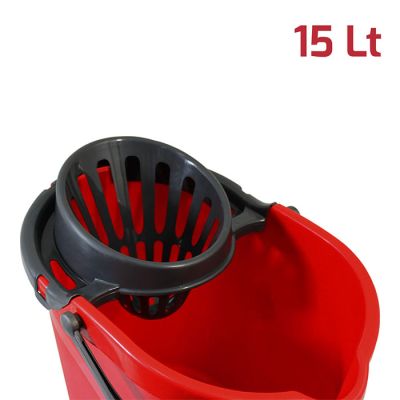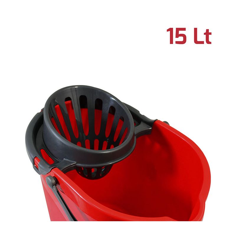 Secchio Evergreen da 15lt in PP rosso con manico e strizzatore per mop in PP antracite. Sulla superficie interna del secchio è presente una scala graduata per un dosaggio ottimale dei detersivi ed è dotato di beccuccio e fondo ergonomico per svuotarlo facilmente. Lo strizzatore è removibile assicurando una pulizia perfetta del prodotto. Dal design senza tempo, robusto, pratico e realizzato con materiali certificati e di alta qualità, è l’ideale per la pulizia di qualsiasi ambiente, sia domestico che professionale. Può essere abbinato alla vaschetta per il recupero dell’acqua sporca da 6lt.