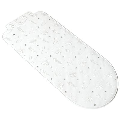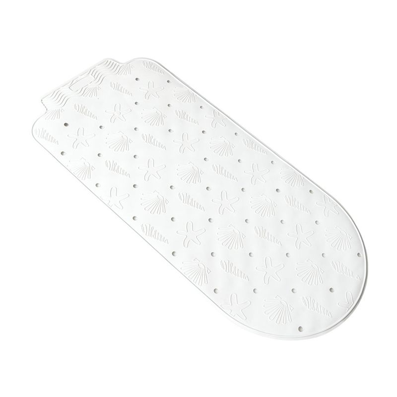 Tappetino per vasca in gomma sintetica bianco con decoro a tema marino. La superficie della vasca è spesso molto scivoloso e questo tappetino diventa indispensabile. Grazie alle numerose e forti ventose presenti sotto, il tappetino è antiscivolo e sicuro. Aderisce perfettamente al piano della vasca e sulla confezione sono presenti le istruzioni per posizionarlo al meglio. I fori invece permettono all'acqua di defluire sotto il tappetino una volta che viene svuotata la vasca. Per le sue dimensioni, può essere usato anche nelle docce più grandi.