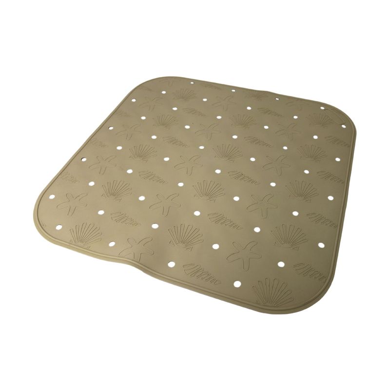 Tappetino per doccia in gomma sintetica beige con decoro a tema marino. La superficie del piano della doccia è spesso molto scivoloso e questo tappetino diventa indispensabile. Grazie alle numerose e forti ventose presenti sotto, il tappetino è antiscivolo e sicuro. Aderisce perfettamente al piano della doccia e sulla confezione sono presenti le istruzioni per posizionarlo al meglio. I fori invece permettono all'acqua di defluire sotto il tappetino.