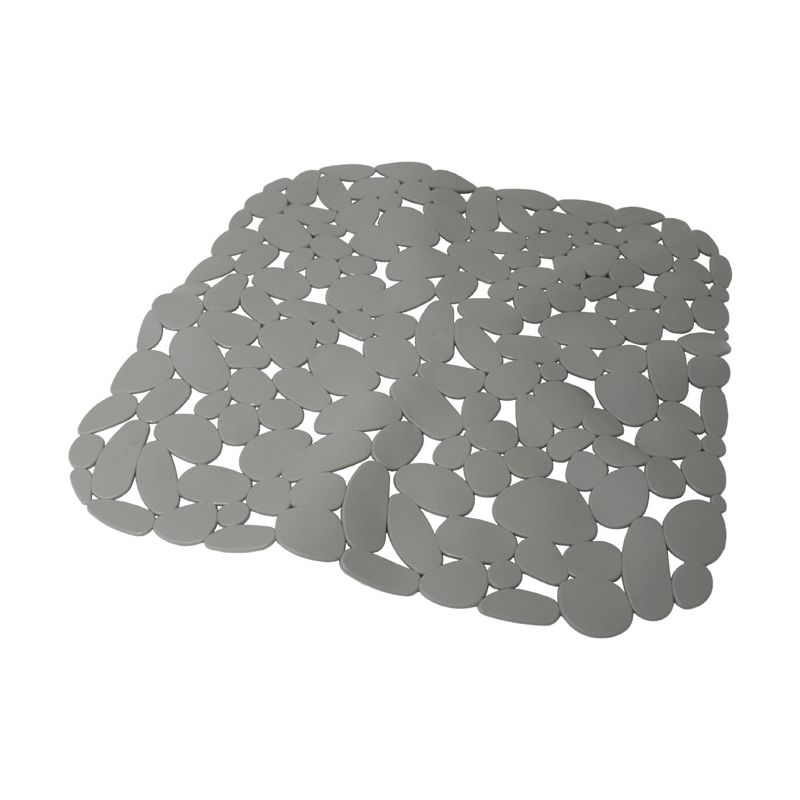 Tappetino per doccia Rock in PVC grigio talpa. La superficie del piano della doccia è spesso molto scivoloso e questo tappetino diventa indispensabile. Grazie alle numerose e forti ventose presenti sotto, il tappetino è antiscivolo e sicuro. Aderisce perfettamente al piano della doccia e sulla confezione sono presenti le istruzioni per posizionarlo al meglio. I fori creati dal design ""a ciottolato"" invece permettono all'acqua di defluire sotto il tappetino.