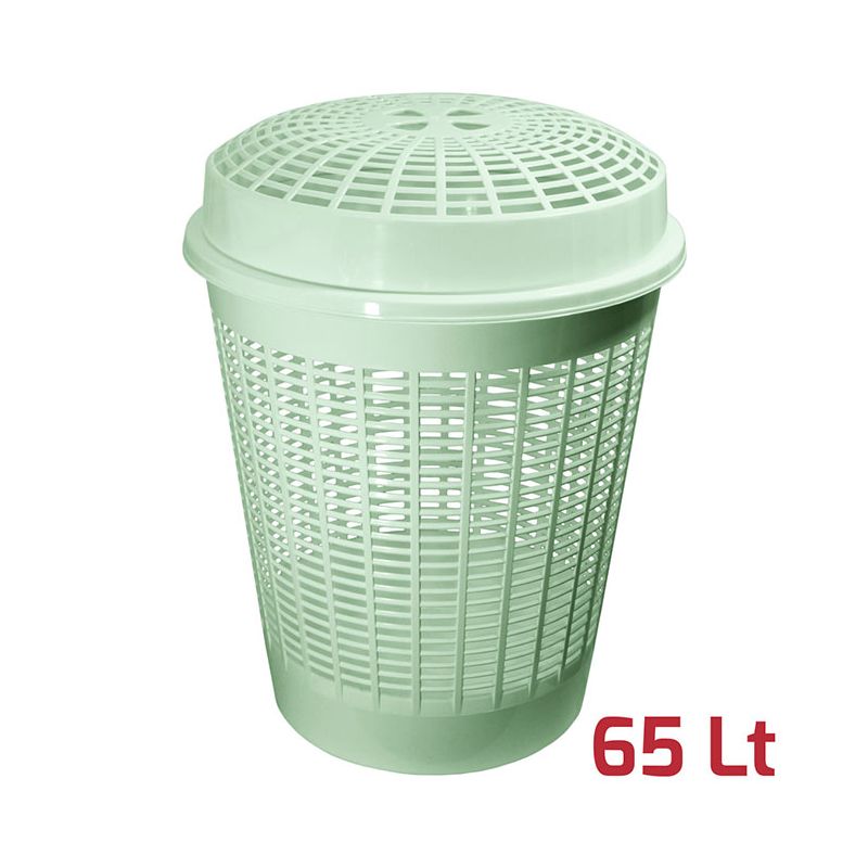 Cesta traforata Europa con coperchio in PP verde salvia. Il coperchio è dotato di pratici fori per sollevarlo. Può essere utilizzata in bagno o in lavanderia come cesta per il bucato ma anche nelle camere dei bimbi per organizzare i giocattoli o addirittura per cura dell'orto o del giardino, ad esempio per raccogliere le foglie secche. I materiali certificati assicurano robustezza e durabilità e la superficie lucida permette una pulizia veloce e accurata.