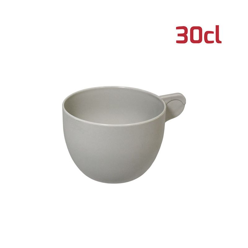 Tazza Break con manico in PP bianco panna che può essere abbinato al piattino Smart. Grazie alla grande capacità di 30cl è una tazza perfetta per cappuccini, tè o tisane in inverno oppure per gelati, macedonie o granite in estate. Può essere lavata in lavastoviglie e il materiale è infrangibile quindi è sicura anche per i bambini.