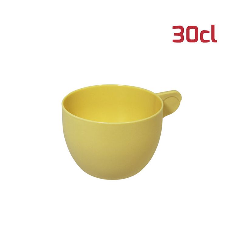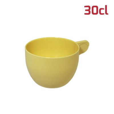 Tazza Break con manico in PP giallo pastello che può essere abbinato al piattino Smart. Grazie alla grande capacità di 30cl è una tazza perfetta per cappuccini, tè o tisane in inverno oppure per gelati, macedonie o granite in estate. Può essere lavata in lavastoviglie e il materiale è infrangibile quindi è sicura anche per i bambini.