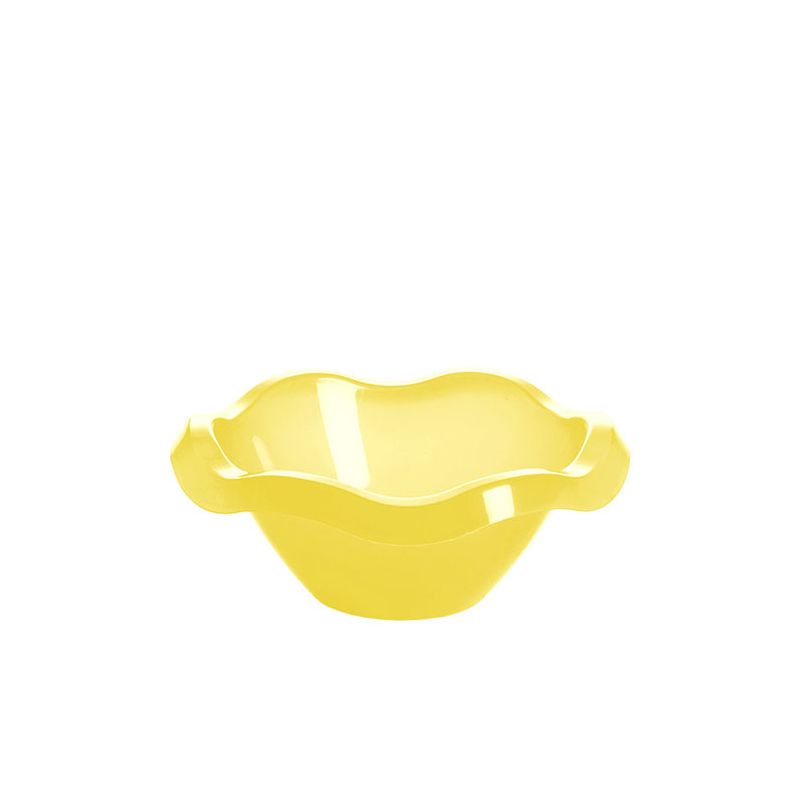 Coppetta Vanity Ø 14,5 cm in PP giallo trasparente ideale per servire stuzzichini, salse, macedonie o gelati. Con il suo bordo ondulato e i colori accesi renderà la tavola allegra e spiritosa. Può essere lavata in lavastoviglie.