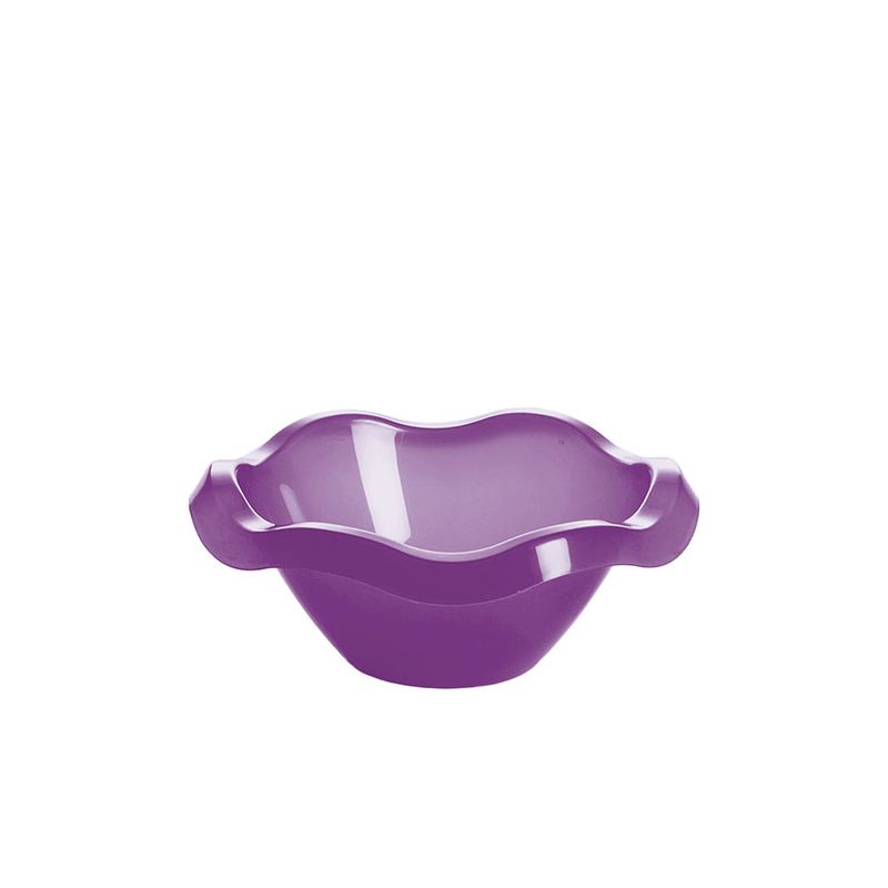 Coppetta Vanity Ø 14,5 cm in PP viola trasparente ideale per servire stuzzichini, salse, macedonie o gelati. Con il suo bordo ondulato e i colori accesi renderà la tavola allegra e spiritosa. Può essere lavata in lavastoviglie.