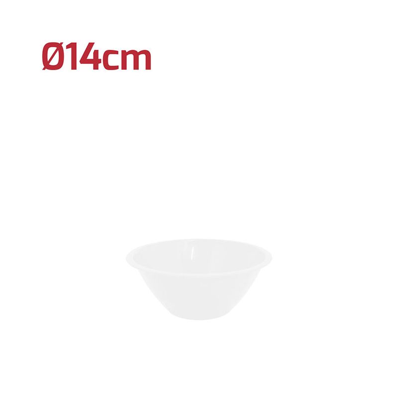 Coppetta Mediterranea Ø 12 cm in PP bianco ideale per servire macedonie, salse, gelati o stuzzichini e con i suoi colori accesi renderà la tavola allegra e festosa. È riutilizzabile e lavabile in lavastoviglie.