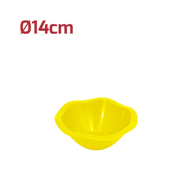 Coppetta Vanity Ø 14 cm in PP giallo vivo ideale per servire stuzzichini, salse, macedonie o gelati. Con il suo bordo ondulato e i colori accesi renderà la tavola allegra e spiritosa. È riutilizzabile e lavabile in lavastoviglie.