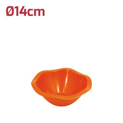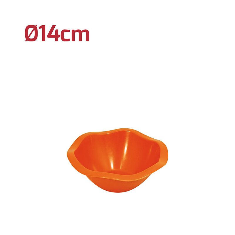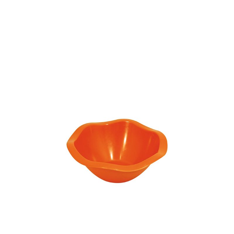 Coppetta Vanity Ø 14 cm in PP arancio ideale per servire stuzzichini, salse, macedonie o gelati. Con il suo bordo ondulato e i colori accesi renderà la tavola allegra e spiritosa. È riutilizzabile e lavabile in lavastoviglie.