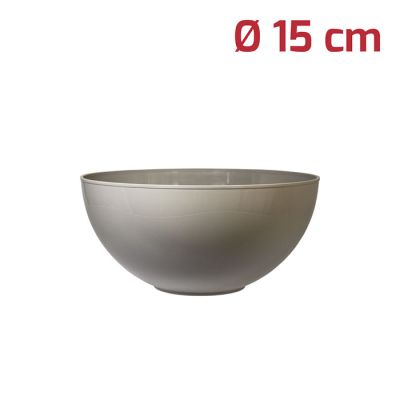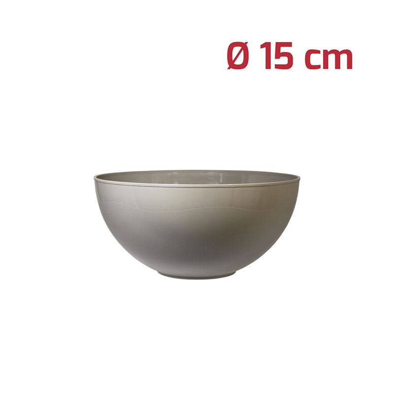 Coppetta Roma in PP grigio caldo. Caratterizzata da un'elegante onda sulla superficie esterna enfatizzata dalla doppia finitura lucida/satinata, ha un design tondeggiante che la rende molto capiente e funzionale. Riutilizzabile e lavabile in lavastoviglie.