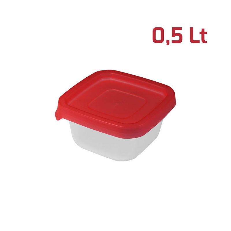 Contenitore Fresko Quad. 0,5L Cop. Rosso Trasp.