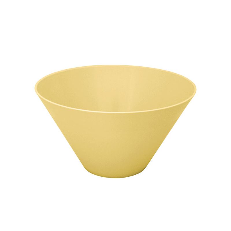 Coppa Cono Ø 28 cm in PP giallo pastello ideale per servire insalate, frutta, patatine o pop corn. Il design semplice e raffinato è enfatizzato dall'anello lucido in contrasto con la satinatura della superficie esterna. Si adatta a tutte le occasioni, dalle più formali alle feste per bambini. Oltre ad essere lavabile in lavastoviglie e quindi riutilizzabile, è resistente e pratica.