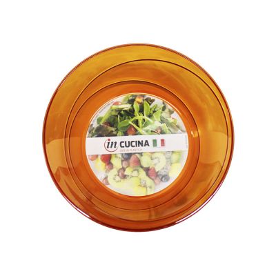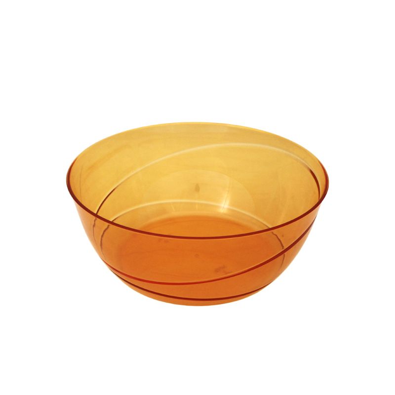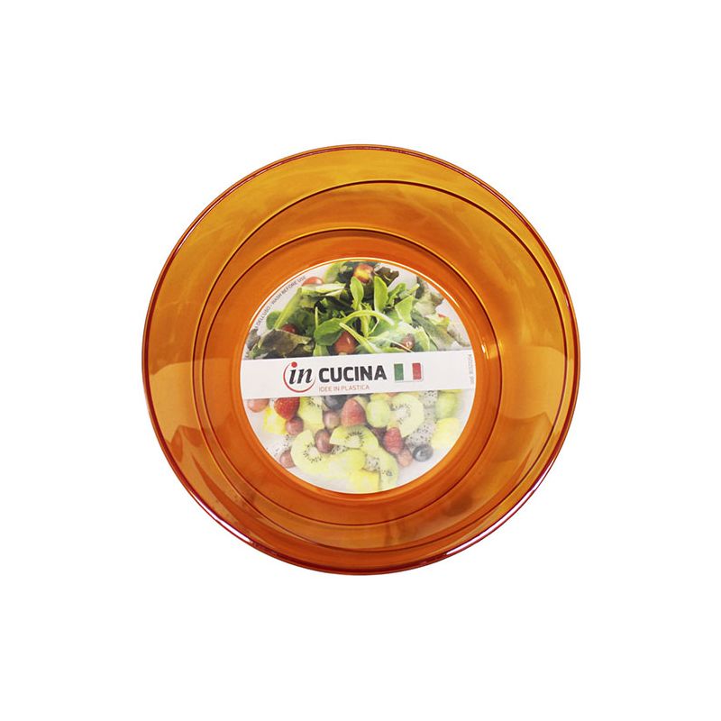 Insalatiera Allegra Ø 23,5 cm in PS arancio trasparente ideale per servire insalate, frutta, patatine o pop corn. Dal design semplice ma raffinato si adatta a tutte le occasioni, dalle più formali alle feste dei bambini. L'insalatiera è riutilizzabile e lavabile in lavastoviglie.