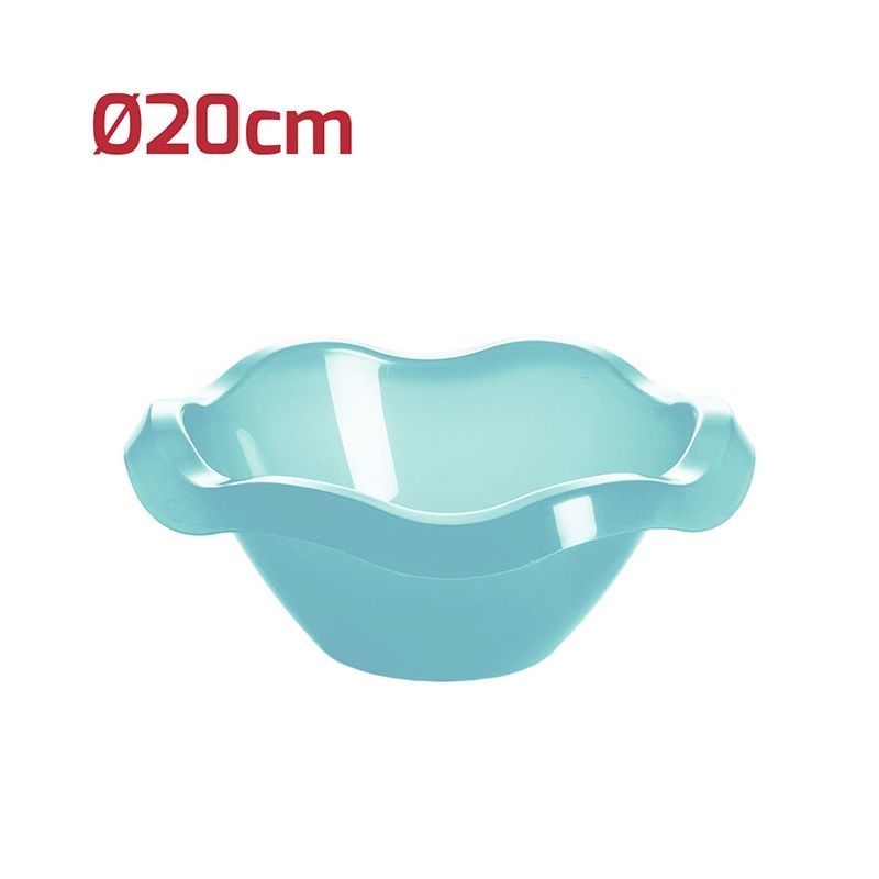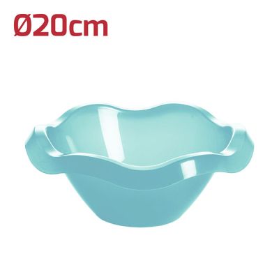 Insalatiera Flower Ø 20 cm in PP azzurro trasparente ideale per servire insalate, frutta, patatine o pop corn. Con il suo bordo ondulato e i colori accesi renderà la tavola allegra e spiritosa. Può essere lavata in lavastoviglie.