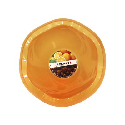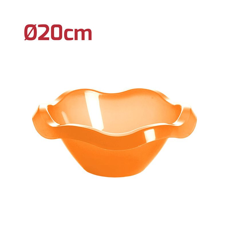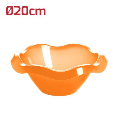 Insalatiera Flower Ø 20 cm in PP arancio trasparente ideale per servire insalate, frutta, patatine o pop corn. Con il suo bordo ondulato e i colori accesi renderà la tavola allegra e spiritosa. Può essere lavata in lavastoviglie.