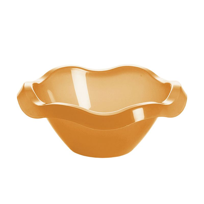 Insalatiera Flower Ø 33 cm in PP arancio trasparente ideale per servire insalate, frutta, patatine o pop corn. Con il suo bordo ondulato e i colori accesi renderà la tavola allegra e spiritosa. Può essere lavata in lavastoviglie.