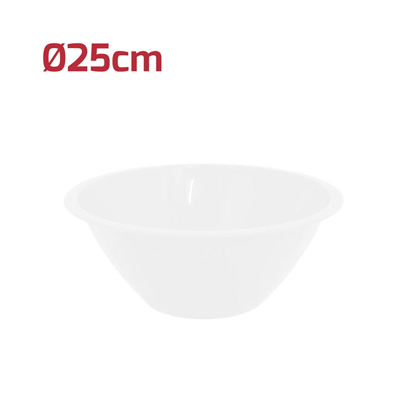Insalatiera Mediterranea Ø 25 cm in PP bianco ideale per servire insalate, frutta, patatine o pop corn. Con il suo design minimale si presta anche alle preparazioni in cucina. Con i suoi colori accesi invece renderà la tavola allegra e festosa. È riutilizzabile e lavabile in lavastoviglie.