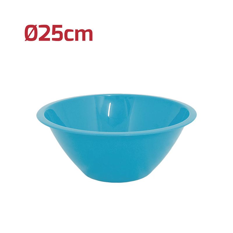 Insalatiera Mediterranea Ø 25 cm in PP turchese ideale per servire insalate, frutta, patatine o pop corn. Con il suo design minimale si presta anche alle preparazioni in cucina. Con i suoi colori accesi invece renderà la tavola allegra e festosa. È riutilizzabile e lavabile in lavastoviglie.