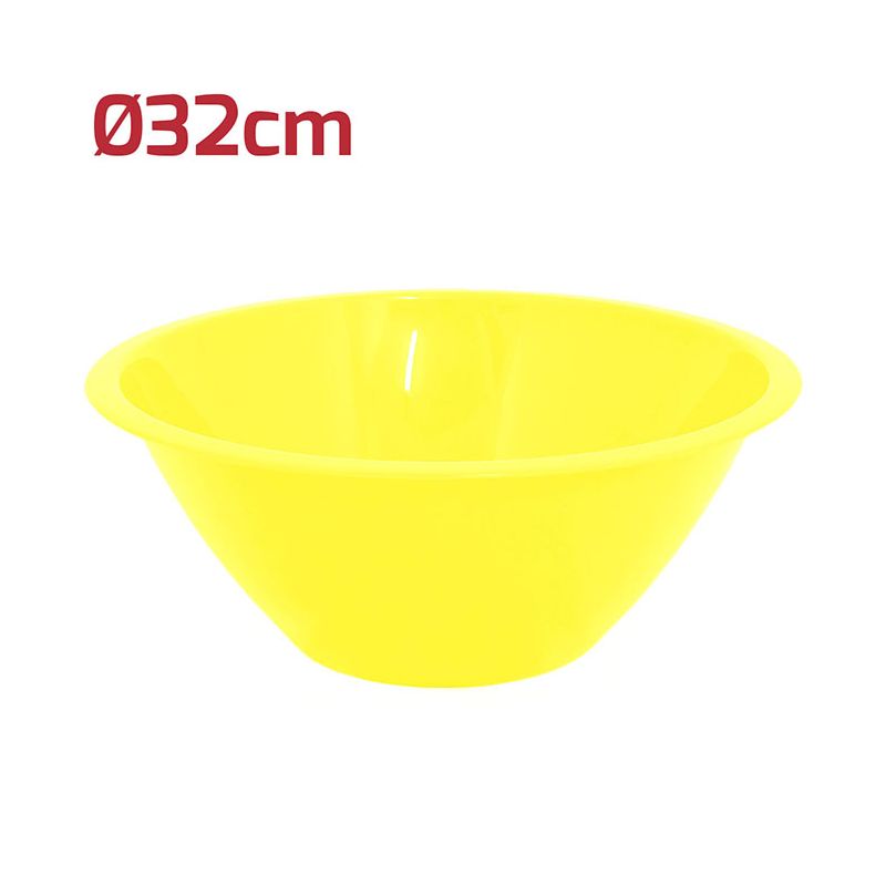 Insalatiera Mediterranea Ø 32 cm in PP giallo vivo ideale per servire insalate, frutta, patatine o pop corn. Con il suo design minimale e la grande capacità si presta anche alle preparazioni di impasti e dolci. Con i suoi colori accesi invece renderà la tavola allegra e festosa. È riutilizzabile e lavabile in lavastoviglie.