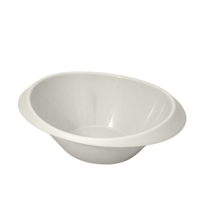 Coppa Noval in PP bianco panna. La sua forma ovale la differenzia dalle classiche coppette o insalatiere e la rende adatta a molteplici utilizzi. Certificata per il contatto alimentare e lavabile in lavastoviglie, può essere usata per servire insalate o zuppe in un modo diverso dal solito, oppure per il pane o le cialde del caffè. Con un design semplice ma elegante può essere anche usata come svuotatasche o contenitore per le caramelle in soggiorno.