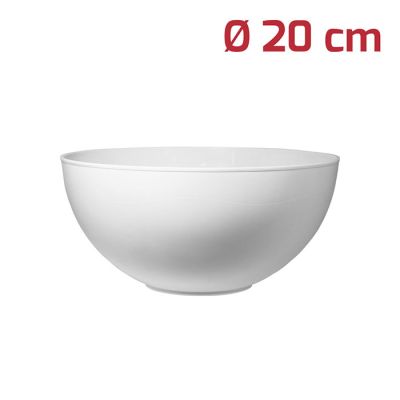 Insalatiera Roma small in PP bianco. Caratterizzata da un'elegante onda sulla superficie esterna enfatizzata dalla doppia finitura lucida/satinata, ha un design tondeggiante che la rende molto capiente e funzionale. Riutilizzabile e lavabile in lavastoviglie.