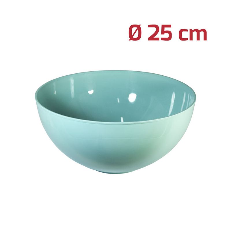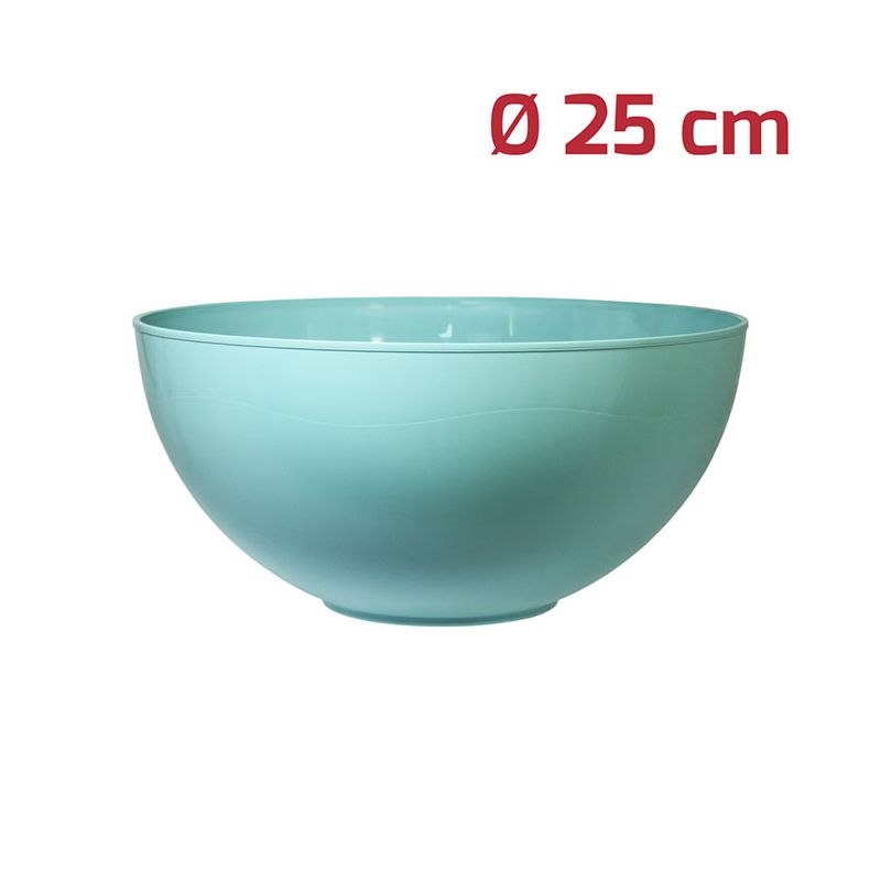 Insalatiera Roma medium in PP tiffany. Caratterizzata da un'elegante onda sulla superficie esterna enfatizzata dalla doppia finitura lucida/satinata, ha un design tondeggiante che la rende molto capiente e funzionale. Riutilizzabile e lavabile in lavastoviglie.