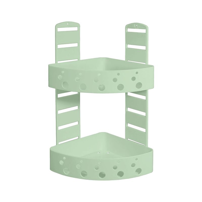 Mensola a 2 ripiani angolare per doccia in PS antiurto verde salvia. Grazie alle fessure sui supporti è possibile decidere la posizione dei 2 ripiani, che possono essere riposizionati a piacimento quando si vuole, così da adattarsi a tutte le esigenze. Ogni ripiano ha il fondo forato per permettere all'acqua di defluire. Il materiale plastico di cui è composta riduce al minimo la visibilità dei residui di calcare e rende la pulizia facile e veloce in quanto non è necessario utilizzare detergenti specifici per superfici cromate. Inoltre i ripiani removibili permettono un'igiene perfetta. Pratica e comoda sia per sfruttare al massimo lo spazio all'interno della doccia sia per chi vuole tenere a portata di mano ed organizzati shampoo e saponi. Il montaggio a muro con le viti rende la mensola stabile e grazie al materiale antiurto sarà durevole nel tempo. Le istruzioni e il kit per il montaggio a muro sono inclusi nella confezione.