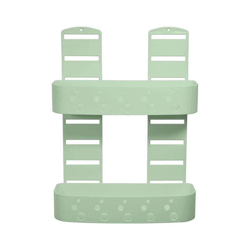 Mensola a 2 ripiani per doccia in PS antiurto verde salvia. Grazie alle fessure sui supporti è possibile decidere la posizione dei 2 ripiani, che possono essere riposizionati a piacimento quando si vuole, così da adattarsi a tutte le esigenze. Ogni ripiano ha il fondo forato per permettere all'acqua di defluire. Il materiale plastico di cui è composta riduce al minimo la visibilità dei residui di calcare e rende la pulizia facile e veloce in quanto non è necessario utilizzare detergenti specifici per superfici cromate. Inoltre i ripiani removibili permettono un'igiene perfetta. Pratica e comoda sia per sfruttare al massimo lo spazio all'interno della doccia sia per chi vuole tenere a portata di mano ed organizzati shampoo e saponi. Il montaggio a muro con le viti rende la mensola stabile e grazie al materiale antiurto sarà durevole nel tempo. Le istruzioni e il kit per il montaggio a muro sono inclusi nella confezione.